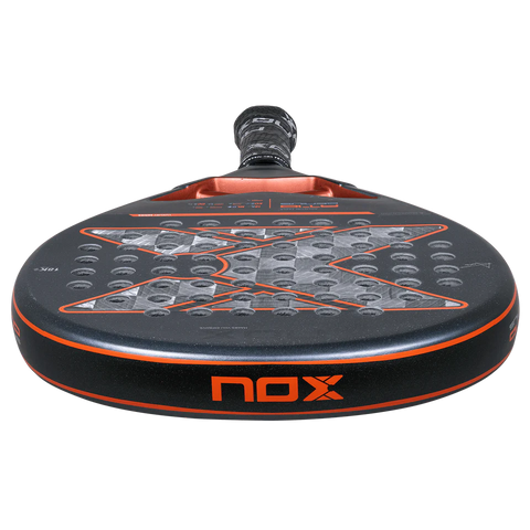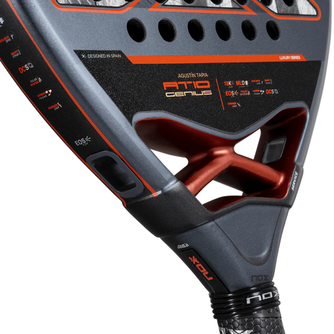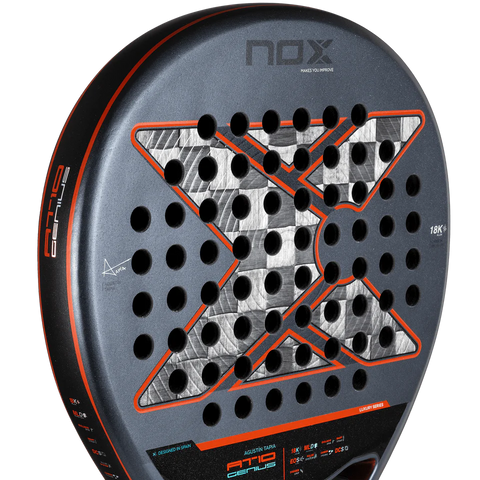 La NOX AT10 Genius 18K Alum 2025 es la nueva arma de Agustín Tapia, creada para jugadores exigentes que buscan máxima potencia y control avanzado. Su construcción en carbono aluminizado 18K ofrece una rigidez superior y una respuesta inmediata, perfecta para un juego agresivo y de alto nivel.
